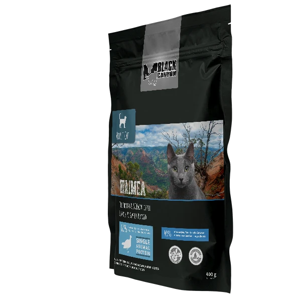 BLACK CANYON Adult Waimea – Truthahn & Süsskartoffel ist ein hochwertiges Alleinfuttermittel für ausgewachsene Katzen und wurde speziell für ernährungssensible Samtpfoten entwickelt. Es enthält nur eine tierische Proteinquelle: frisches und getrocknetes Putenfleisch, das leicht verdaulich ist und Ihrer Katze besonders gut schmeckt. Süsskartoffeln liefern zusätzlich wertvolle Ballaststoffe und unterstützt eine gesunde Verdauung. Taurin und Vitamin A unterstützen die Herzgesundheit und die Sehkraft Ihrer Katze.