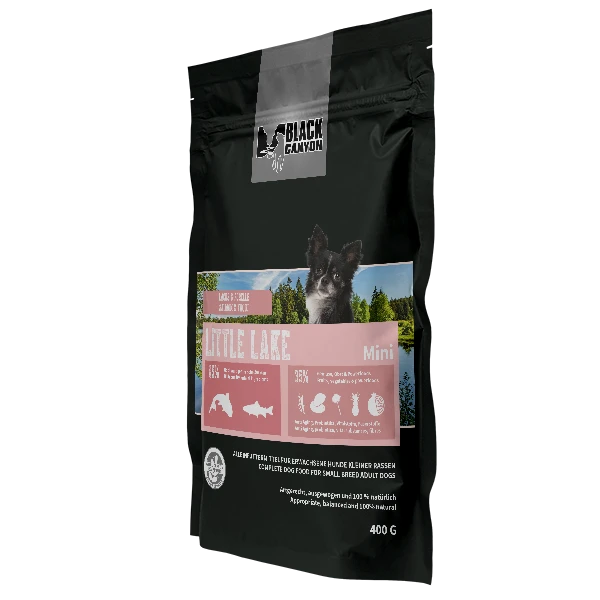 BLACK CANYON Mini Little Lake – Lachs & Forelle ist speziell auf die Bedürfnisse ausgewachsener Hunde kleiner Rassen abgestimmt. Es enthält als Hauptzutaten frischen Lachs und hochwertige Forelle, die Ihren Hund mit wertvollen Proteinen, Omega-3-Fettsäuren und Vitaminen versorgen. Diese fördern die Gesundheit von Haut, Fell, Muskeln und Gelenken.