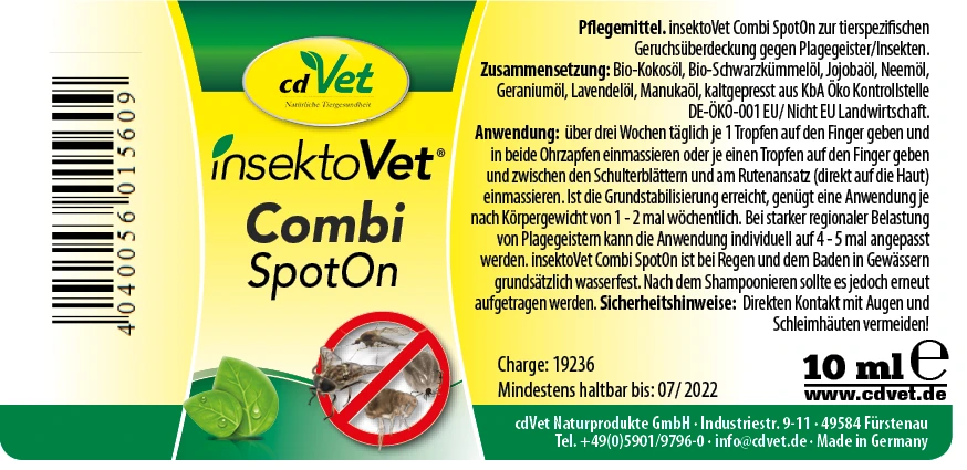 cdVet insektoVet Combi SpotOn bietet eine tierspezifische Geruchsüberdeckung gegen Insekten und andere Plagegeister.