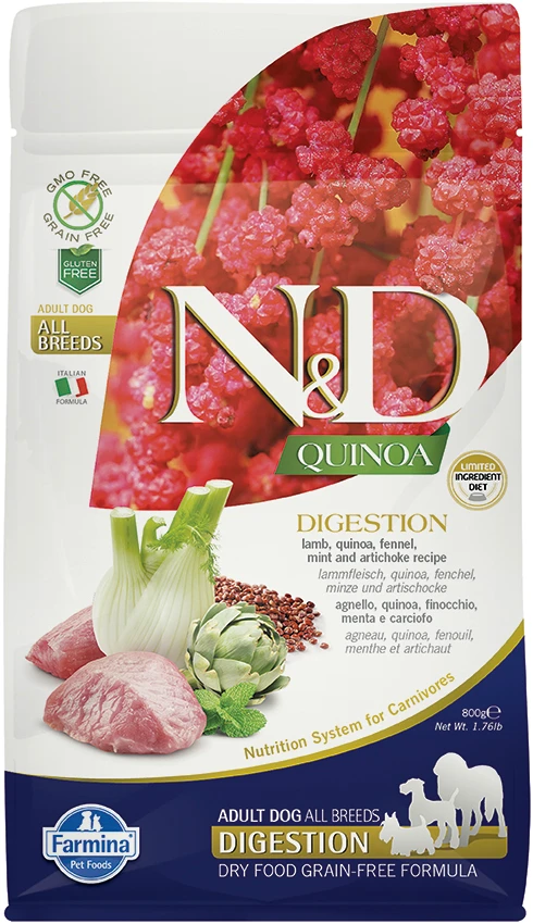 Farmina N&D Quinoa Lamm Digestion ist ein Alleinfuttermittel, das alle Nährstoffe enthält, die Ihr Hund für ein gesundes und glückliches Leben braucht. Es ist frei von künstlichen Konservierungs-, Farb- und Aromastoffen und wird nach strengen Qualitätsnormen hergestellt.
