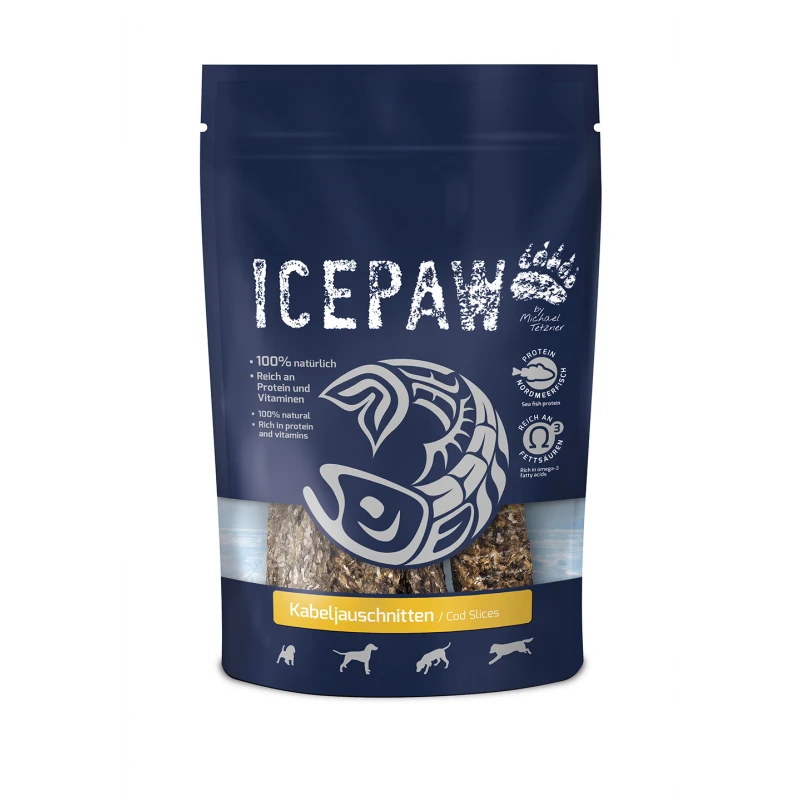 Die ICEPAW Kabeljauschnitten sind ein besonders fettarmer Fisch-Snack für Ihren Vierbeiner. Sie bestehen zu 100 % aus getrockneter Kabeljauhaut, was einen natürlichen und intensiven Geschmack garantiert. Diese Snacks sind aber nicht nur lecker, sondern auch ideal für die Zahnpflege. Denn das Knabbern hält die Zähne sauber und kann bei regelmässiger Anwendung das Zahnsteinrisiko verringern. Gönnen Sie Ihrem Liebling diesen Leckerbissen, der gleichzeitig etwas für seine Gesundheit tut.
