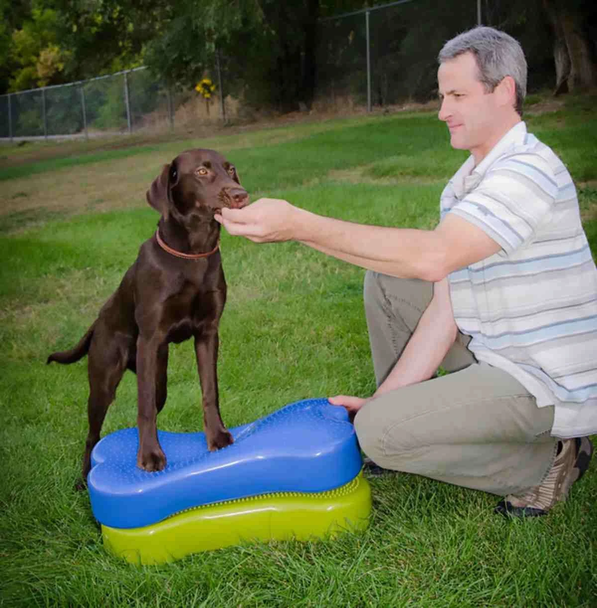 Stabilitäts-Training auf dem K9FITbone hilft dem Aufbau von Muskeln, dem Körperbewusstsein und dem Gleichgewicht. Stabilitäts-Training ist eine tolle Möglichkeit Bindung zu Ihrem Hund aufzubauen, neues Verhalten zu lernen und fördert die Stärkung vom Kraftzentrum des Körpers Ihres Hundes. Fun Fitness-Training mit dem K9FITbone ist auch ein guter Weg, um Stress zu reduzieren, überschüssige Kalorien zu verbrennen, und es ist ein gesunder „Job“ für Ihren Hund. 15 Minuten im Tag.