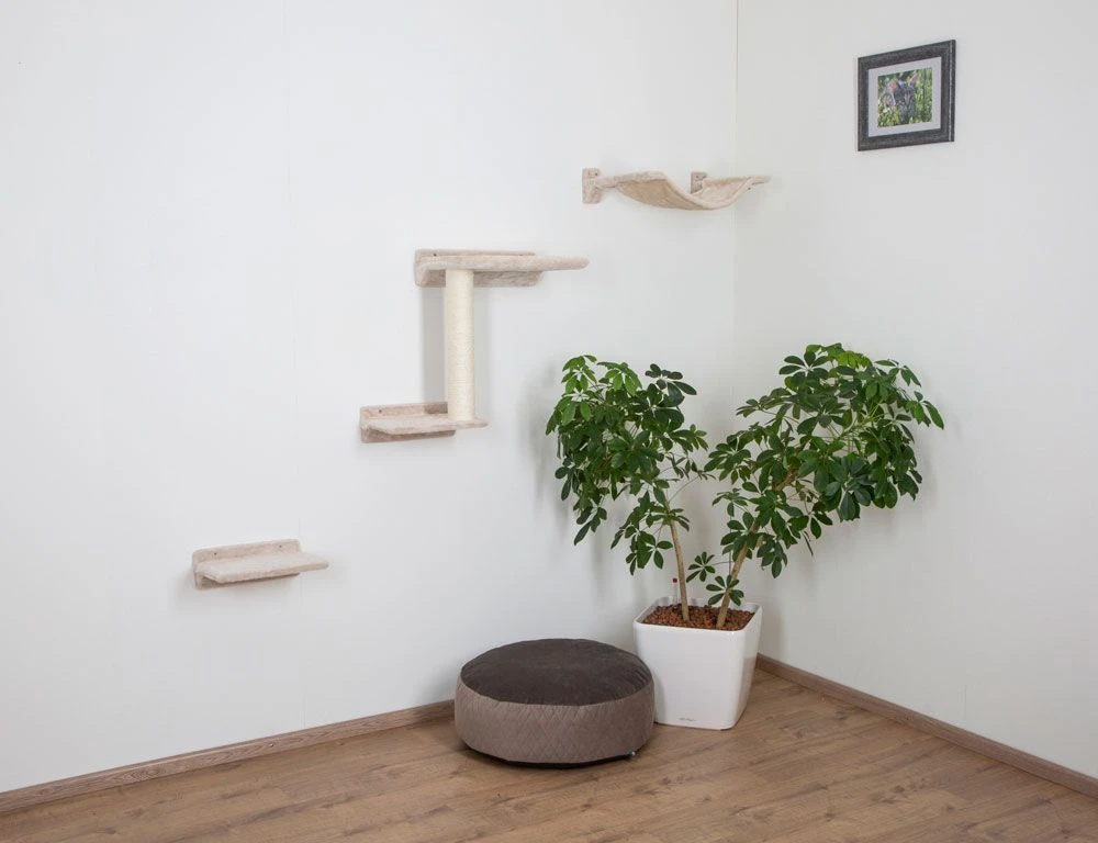 Die mehrteiligen Kletterwand-Systeme bieten der Katze auch in beengten Räumen und Wohnungen genügend Frei- und Spielraum. Vom 5-teiligen Einsteigerset bis hin zur kompletten Wandlösung mit 9 Teilen wird man jedem Katzenwunsch gerecht und bietet dem Vierbeiner ein Kletterparadies in den eigenen vier Wänden. Alle Sets werden mit dem nötigen Wandmontagematerial und einer Aufbauanleitung geliefert.