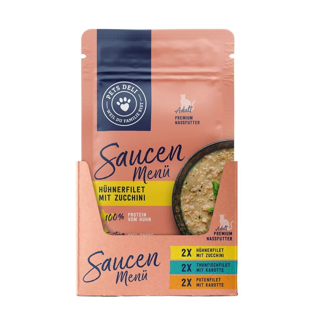 Alle Saucenliebhaber aufgepasst: Das Vorratspaket enthält 12 Tüten der leckeren drei Saucenmenüs mit hochwertigem Hühner-, Puten- und Thunfischfilet. Dazu werden Karotten und Zucchini in einer fleischhaltigen Brühe als Sauce gereicht, die ohne Malz, Zucker oder andere Geschmacksverstärker auskommt. Eine Kombination, die für eine besonders hohe Akzeptanz sorgt.