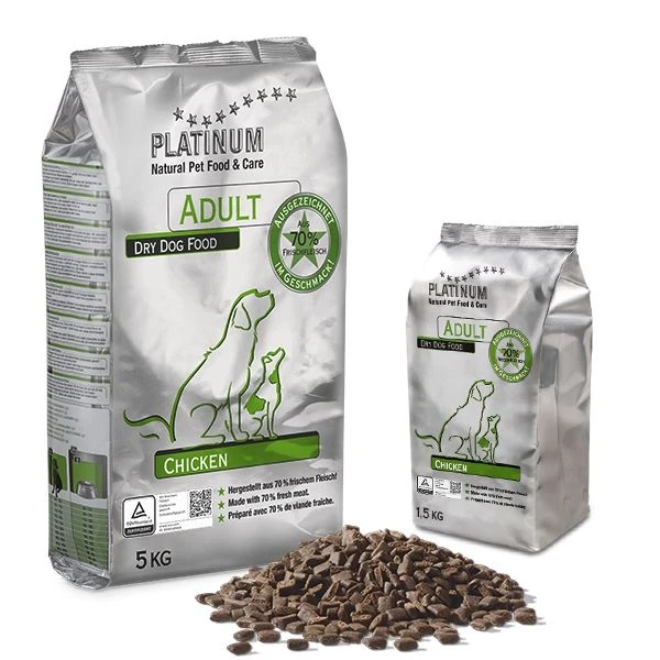 Gönnen Sie Ihrem ausgewachsenen treuen Gefährten mit PLATINUM Adult Chicken eine exklusive Hundevollnahrung, die mit 70 % frischem Hähnchenfleisch ein unvergleichliches Geschmacks- und Nährstofferlebnis bietet. Bei PLATINUM Natural Food wird ausschliesslich Frischfleisch verwendet, das auch für den menschlichen Verzehr zugelassen ist. Schonend bei niedrigen 95 Grad werden die Rohstoffe erhitzt und behutsam gegart. Die Zugabe von Vitaminen, Fetten, kaltgepressten Ölen und wertvollen Kräutermischungen erfolgt bei Raumtemperatur, um ihre natürliche Qualität zu bewahren. Ihr Hund verdient nur das Beste – erleben Sie die PLATINUM-Qualität aus erster Hand und sorgen Sie für eine ganz besondere Belohnung.