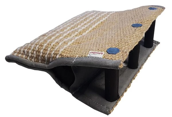 Beisskissen Jute mit 3 Griffen. Hier ist sie Beisswulst perfekt geformt um ein gutes und sicheres anbeißen zu trainieren. Die schräge zulaufende Beißfläche ermöglicht einen vollen Griff.