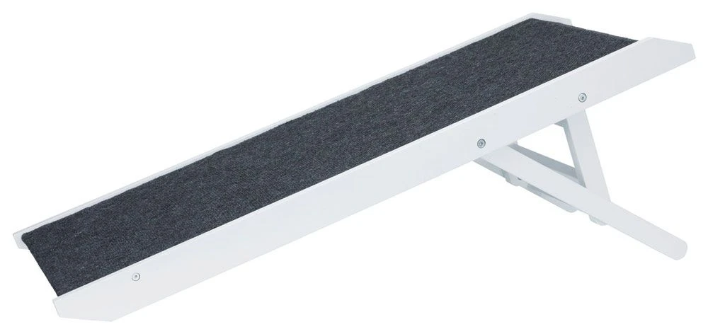 Praktische Rampe aus lackiertem MDF, mit einer Anti-Rutsch-Gummierung aus Filz. Geeignet für den Einsatz im Haus, z.B. als Aufstiegshilfe auf das Bett oder das Sofa. Die Höhe ist dreifach verstellbar: 29 cm, 36 cm oder 43 cm.